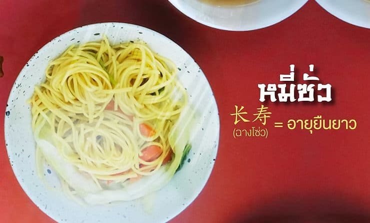 เส้นหมี่ซั่วมีความยาวกว่าเส้นก๋วยเตี๋ยวปกติ จึงเป็นสัญลักษณ์ของการมีอายุยืนยาว