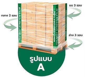 - พันสินค้าซ้ำ 2 รอบ จากด้านบนลงด้านล่าง เพื่อให้มั่นใจว่าครอบคลุมสินค้าทั้งหมด