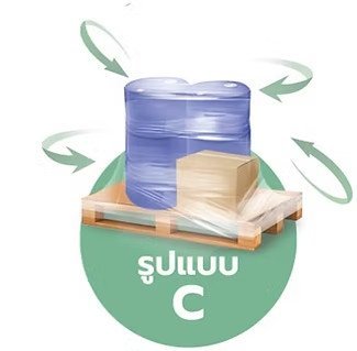 การพันสินค้ารูปแบบ C : ไม่สามารถระบุรอบพันได้ ให้ดูความเหมาะสมตามหน้างาน โดยเน้นพันให้ฟิล์มทับซ้อนกัน และฟิล์มแต่ละชั้นเหลื่อมกันประมาณ 20 ซม.