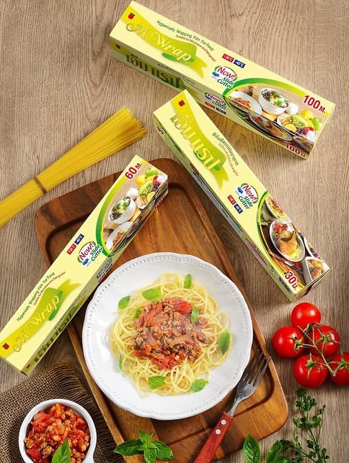 - ฟิล์มมีความยืดหยุ่น และแนบติดภาชนะได้ง่าย